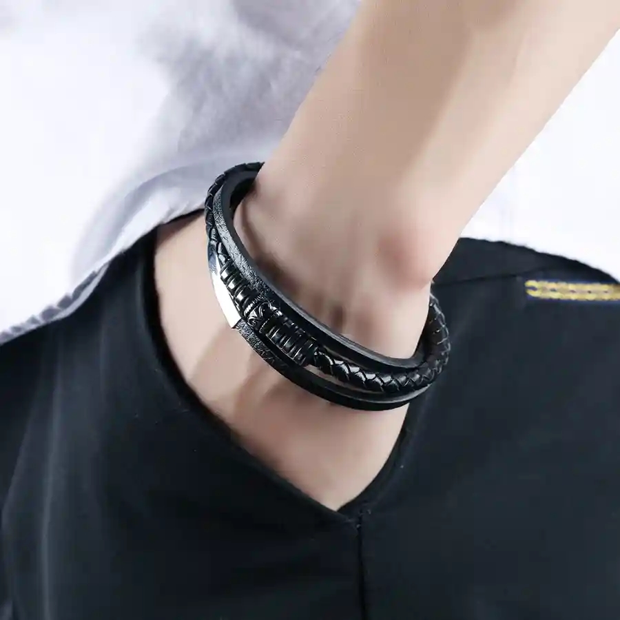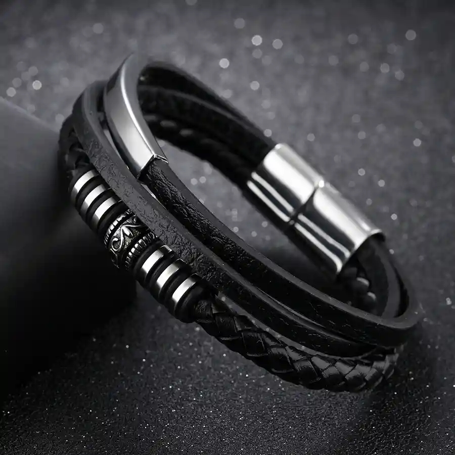Black Valor – Miesten rannekoru mustasta nahasta ja teräksestä