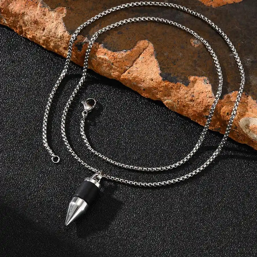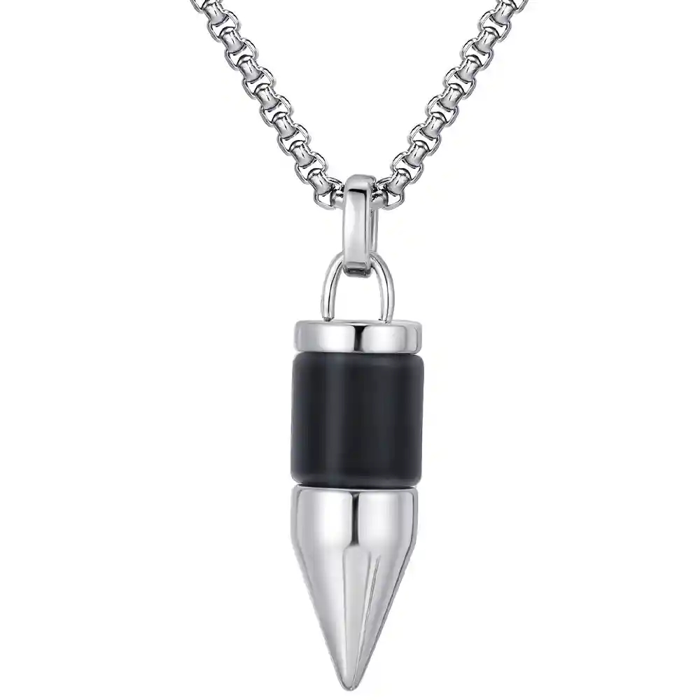BulletCore Steel Necklace on luotu miehelle, joka uskaltaa erottua. Riipus, joka on saanut inspiraationsa patruunasta, on valmistettu ruostumattomasta teräksestä mustalla keskiosalla, mikä antaa rouhean ja maskuliinisen ilmeen.