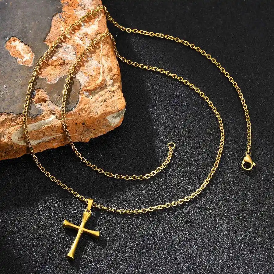 Golden Faith Cross Necklace on maskuliininen kaulakoru ruostumattomasta teräksestä, jossa on elegantti kullanvärinen viimeistely.