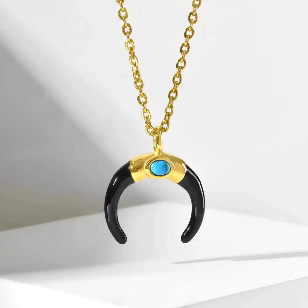 Golden Horn miesten kaulakoru kullatusta teräksestä turkoosilla kivellä ja mustalla sarvella – marjoe.fi