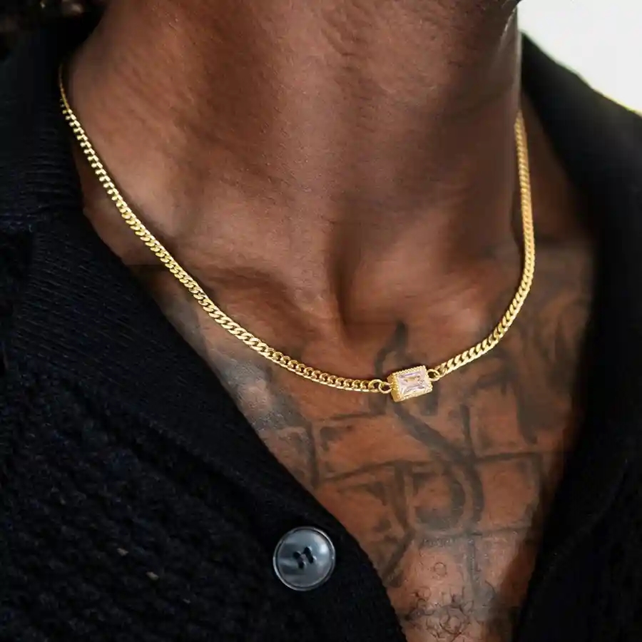 Golden Link CZ kaulakoru miehille on valmistettu kullatusta ruostumattomasta teräksestä, ja sen keskipisteenä on tyylikäs neliönmuotoinen CZ-kivi.
