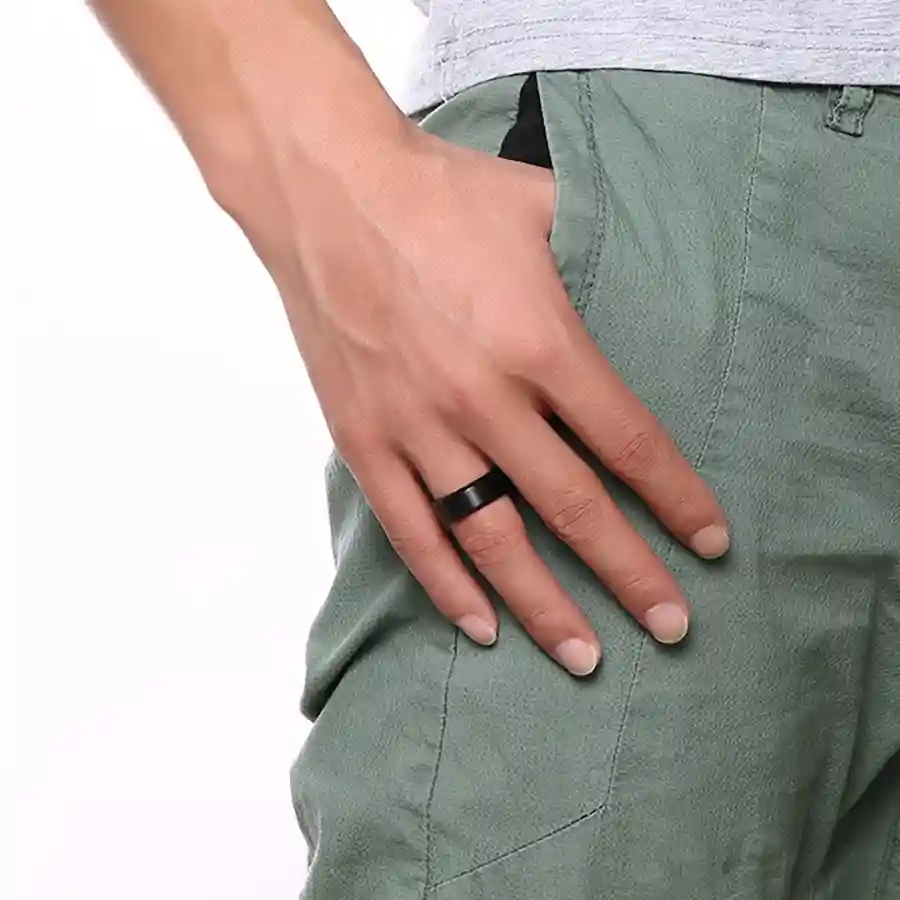 Tämä musta titaanisormus miehille on varma valinta, jos haluat modernin, ajattoman ja hillityn voimakkaan miesten korun.