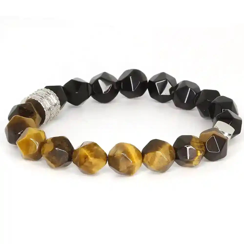 “Nordic Balance” helmirannekoru yhdistää voiman ja eleganssin voimakkailla 10 mm:n hiotuilla Tiger Eye- ja akaattihelmillä.