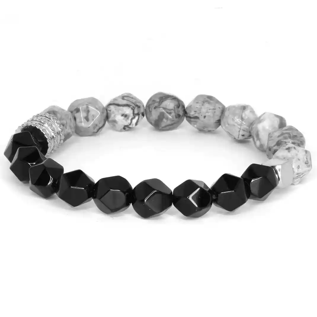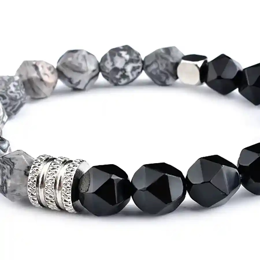 Nordic Balance helmirannekoru miehille, jossa on 10 mm hiotut akaatti- ja lapishelmet.