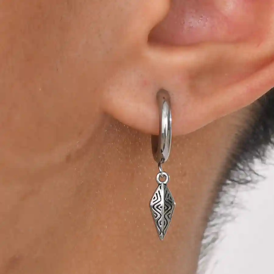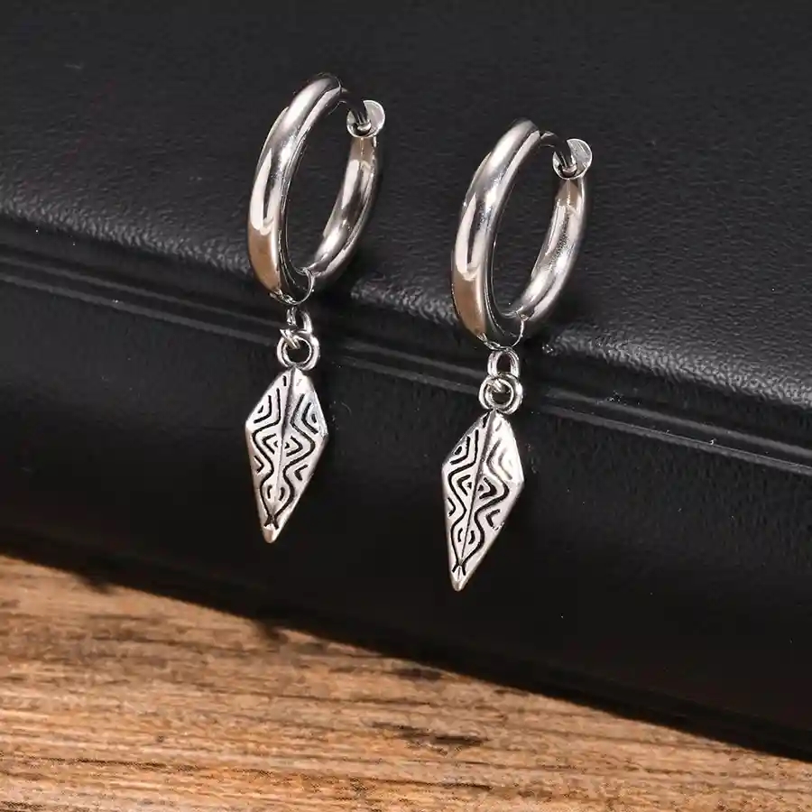 Miesten hoop-korvakoru ruostumattomasta teräksestä pohjoismaisella riipuksella