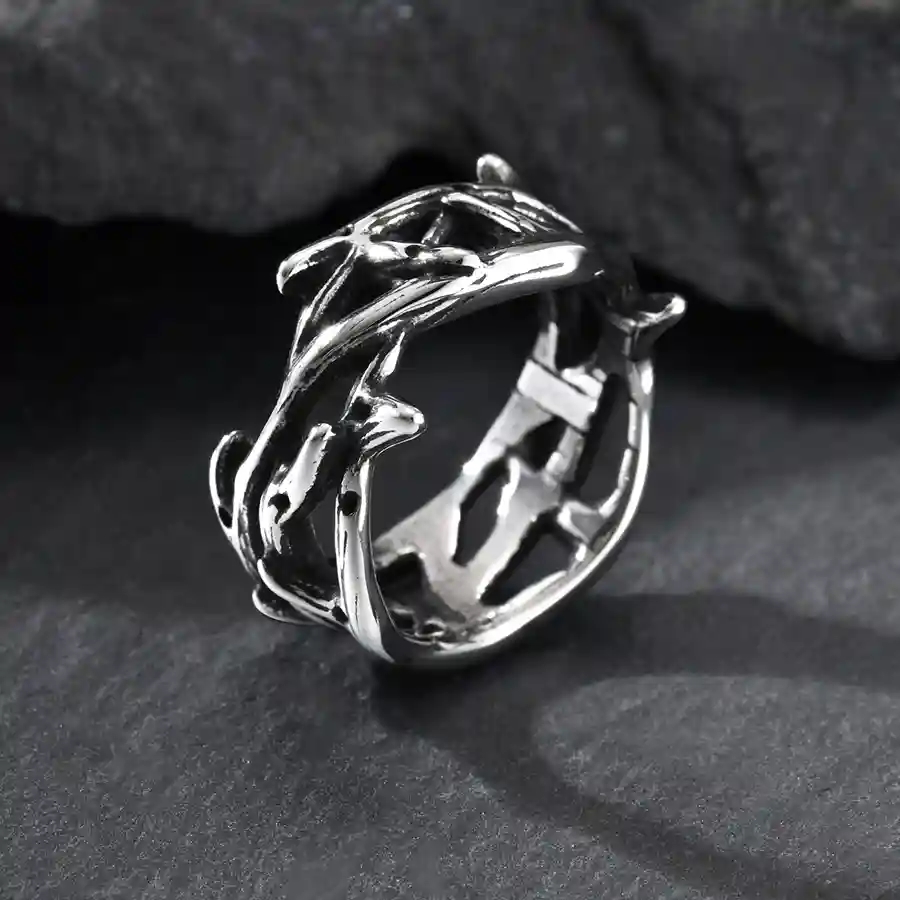 Tämä näyttävä miesten sormus on valmistettu oksidoidusta ruostumattomasta teräksestä ja siinä on karkea, ketjusta inspiroitu muotoilu, joka antaa sormukselle maskuliinisen ja särmikkään ilmeen. Oksidoitu viimeistely korostaa muotoilun yksityiskohtia ja antaa sormukselle kuluneen, teollisen ilmeen – täydellinen miehille, jotka haluavat asenteellista korua.