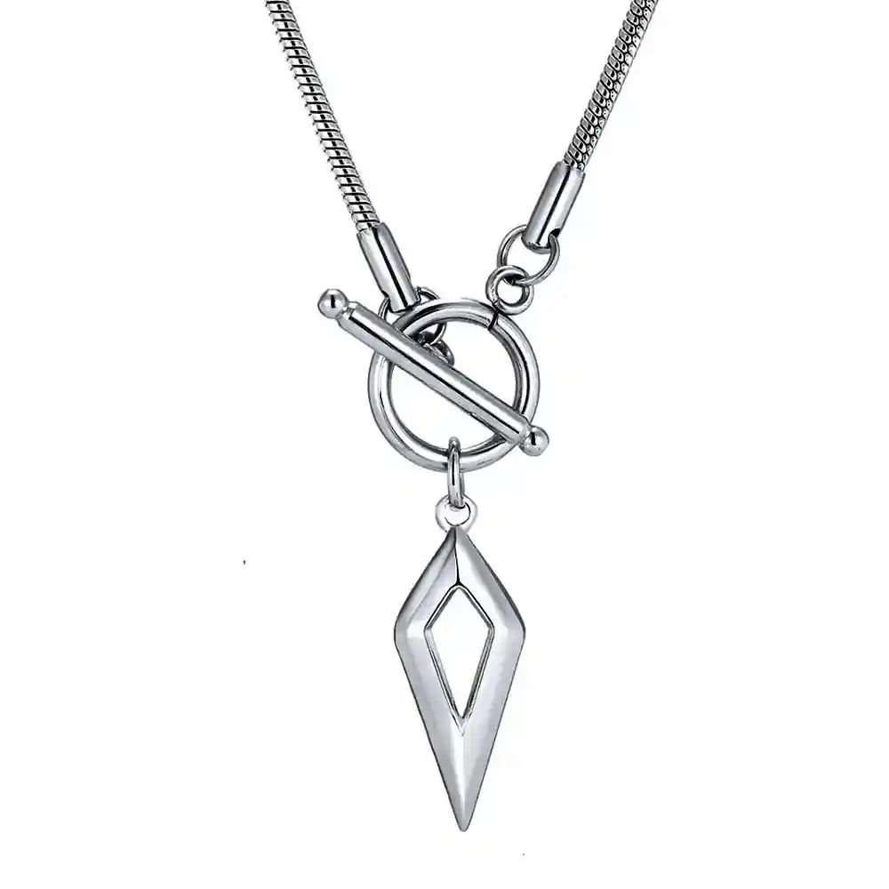 Kaulakoru on valmistettu ruostumattomasta teräksestä, mikä tekee siitä sekä kestävän että arjen käyttöä hyvin sietävän. Elegantti teräspinta luo puhtaan ja ajattoman ilmeen, joten kaulakoru on helppo yhdistää sekä rentoihin että tyylikkäämpiin asukokonaisuuksiin.