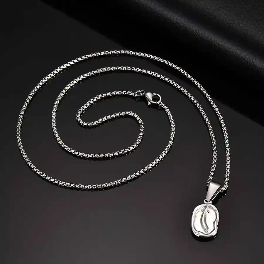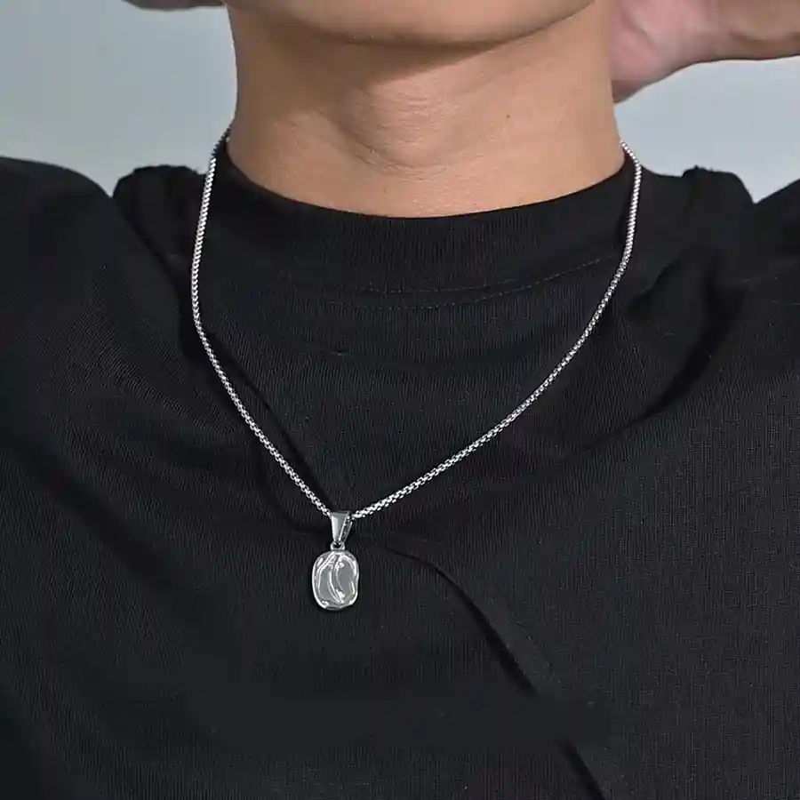 Tyylikäs ja ainutlaatuinen ovaali koru miehille kestävästä ruostumattomasta teräksestä. Orgaaninen muotoilu on mitoiltaan 2.05 × 1.22 cm, ja ohut ketju toimitetaan 60 cm pituudessa. Kevyen laadun ansiosta, vain 4 g, tämä on hienovarainen statement jokaiselle miehelle, joka haluaa modernin ja ajattoman ilmeen.