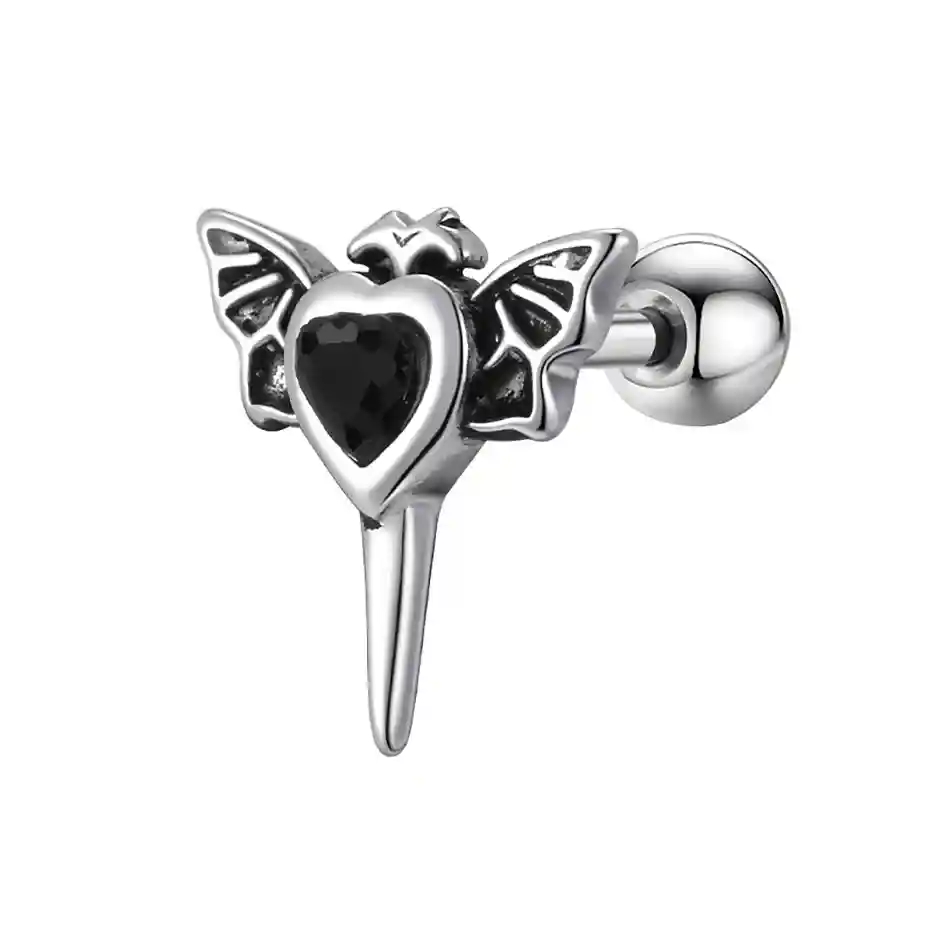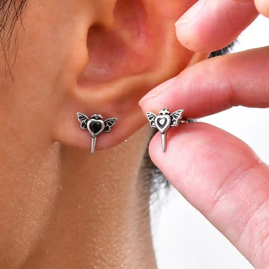Anna tyylillesi rohkea ja voimakas ilme Dark Wing Heart -korvanapilla, joka on maskuliininen miesten korvanappi ruostumattomasta teräksestä, suunniteltu miehille, jotka uskaltavat erottua. Tumma sydämenmuotoinen kivi yhdistettynä yksityiskohtaisiin siipiin ja terävään päätyyn luo coolin, goottimaisen ja särmikkään ilmeen, joka sopii täydellisesti streetweariin, rock-tyyliin tai minimalistiseen mustaan asuun.